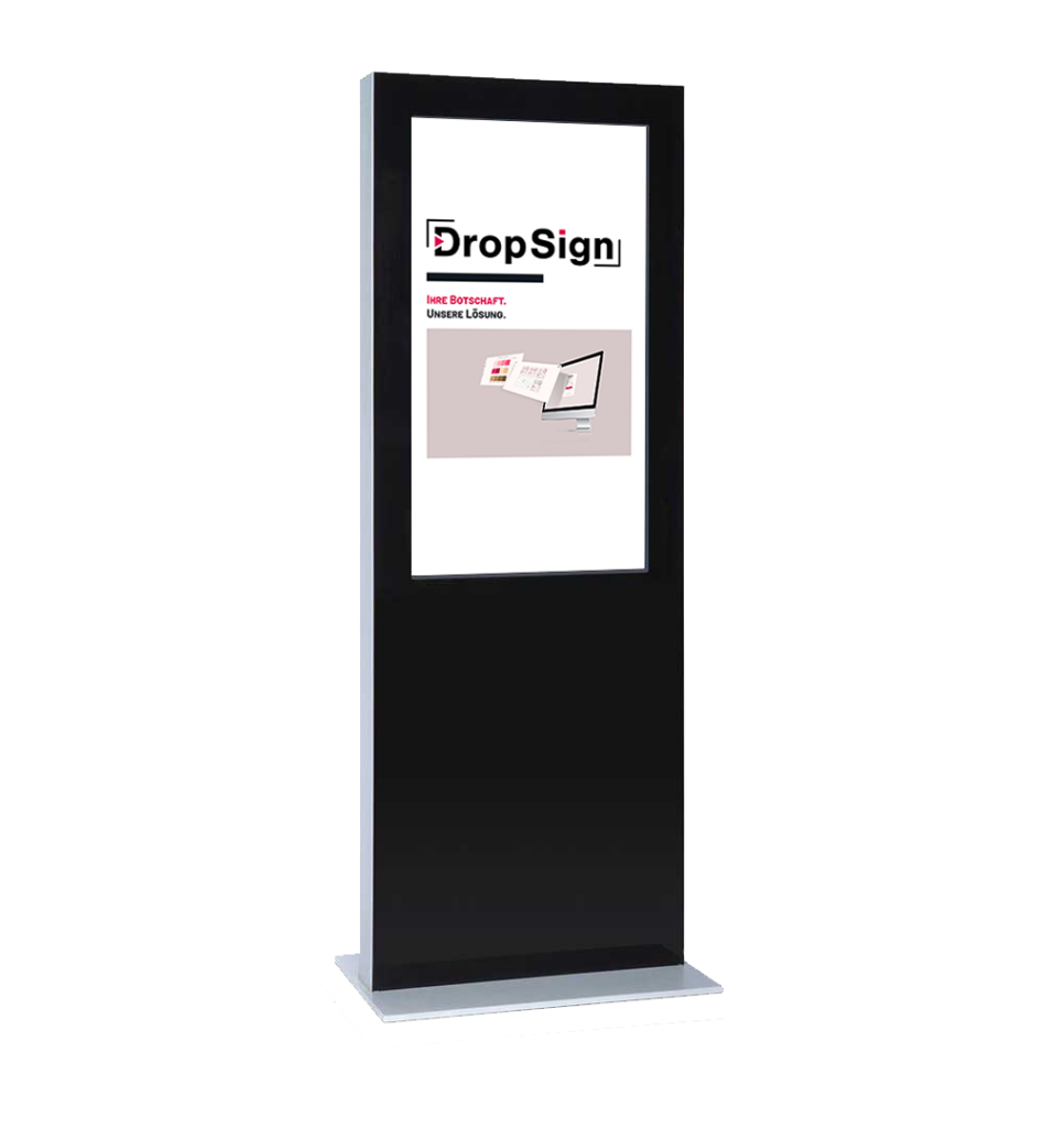 Elegante Standlösungen mit optionaler Touch-Funktion, optimal für Eingangsbereiche, Einkaufszentren, Infopoints oder als digitales Leitsystem.